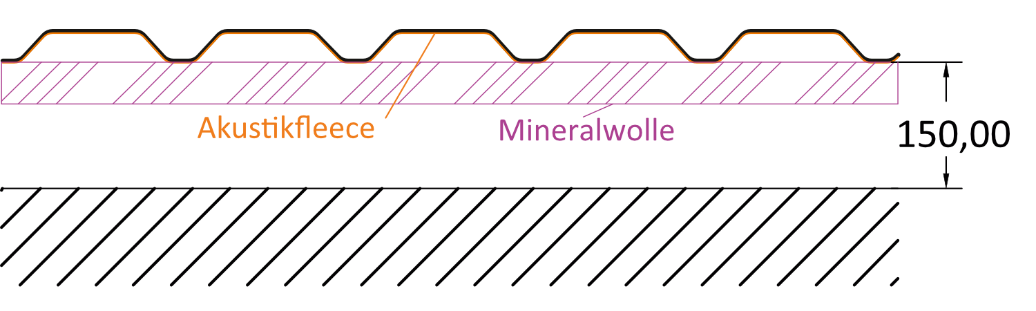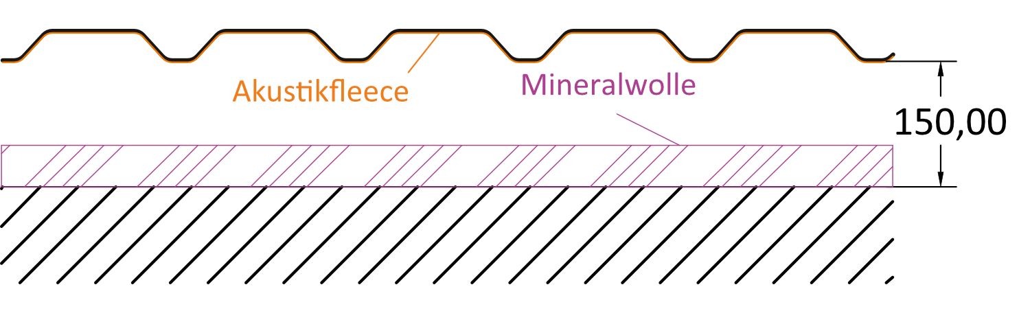 Akustikfleece = Akustický flÍs, Mineralwolle = Minerálna vlna